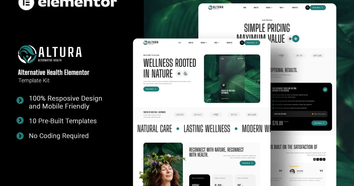 Altura is a modern and professional Elementor Template Kit designed for alternative health and holistic wellness websites. Perfect for wellness practitioners, natural therapy centers, and holistic health coaches, this kit helps you present your services with clarity, share your expertise, and inspire healthier lifestyles. With its clean design and user-friendly layout. Altura uses free elements, so don’t worry about trying this one. Altura provides various pages including Home, About Us, Services, Single Services, Pricing, Event, Review, FAQs, Blog, 404, Contact Us.