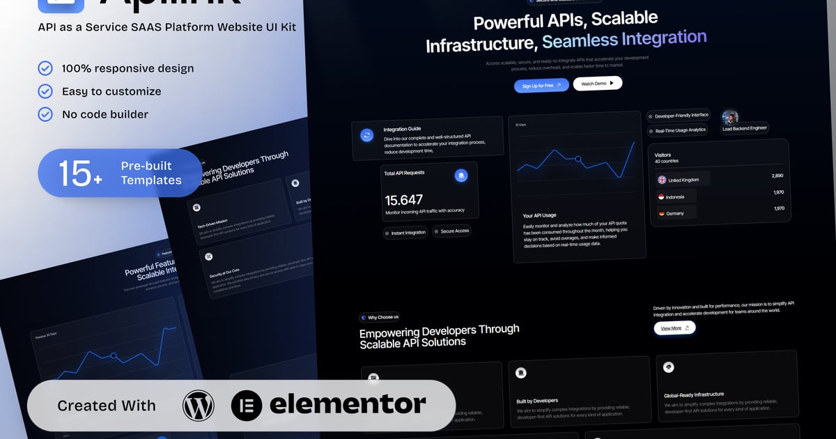 Apilink – API as a Service SAAS Platform Elementor Template Kit for Developer Solutions