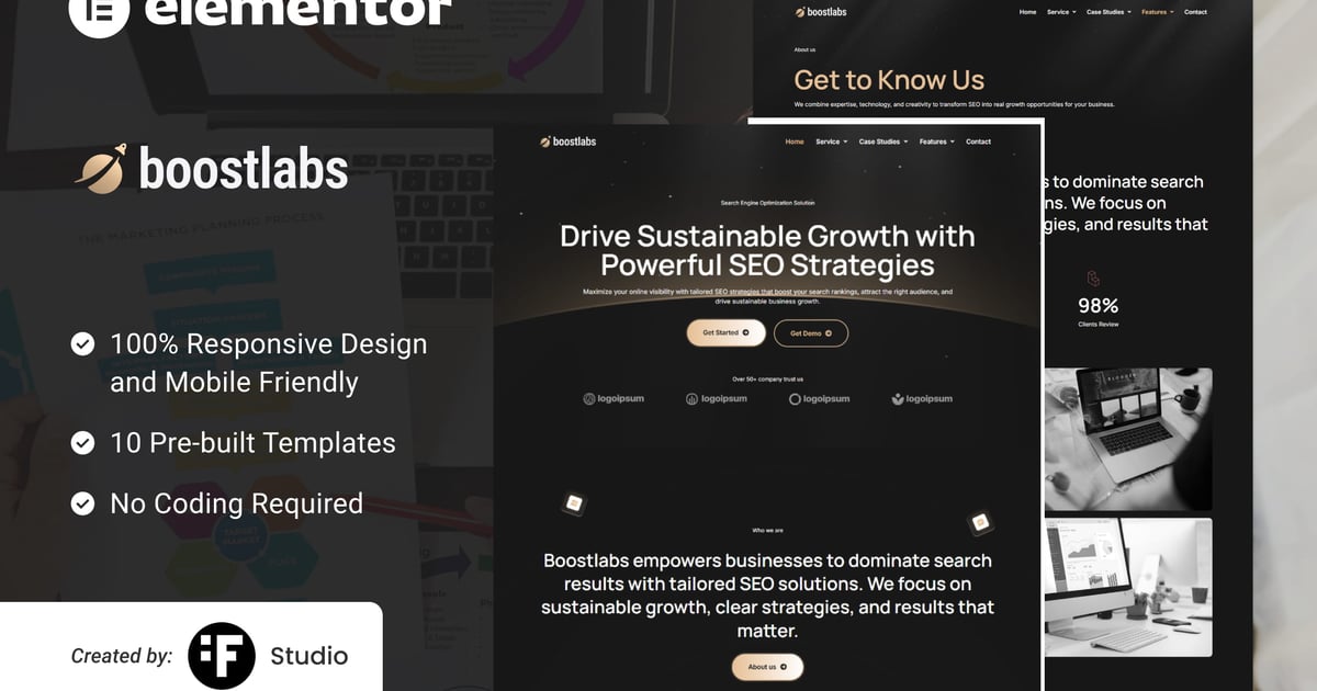 Boostlabs is a modern and clean template kit built for SEO agencies, marketing services, and creative startups. Designed with the free version of Elementor, it’s fully customizable and easy to use without coding.