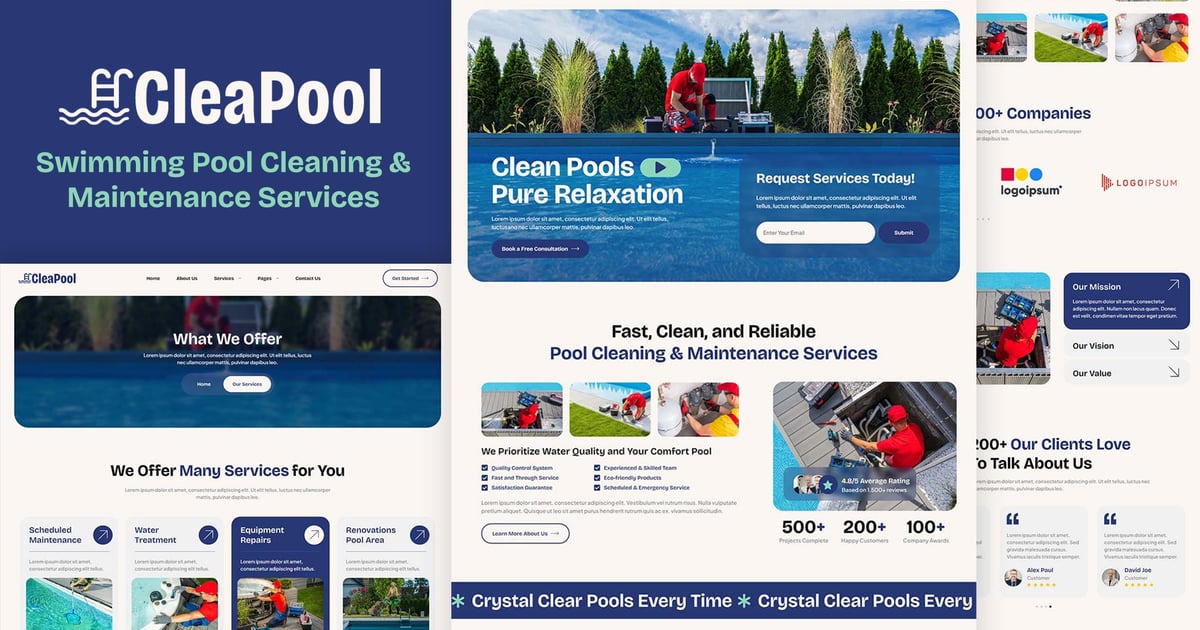 CleaPool is a modern, stylish, and professionally designed Elementor Template Kit created specifically for Swimming Pool Cleaning and Maintenance Service