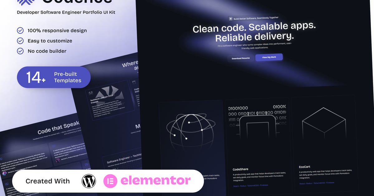 Codence – Developer Software Engineer Portfolio Elementor Template Kit