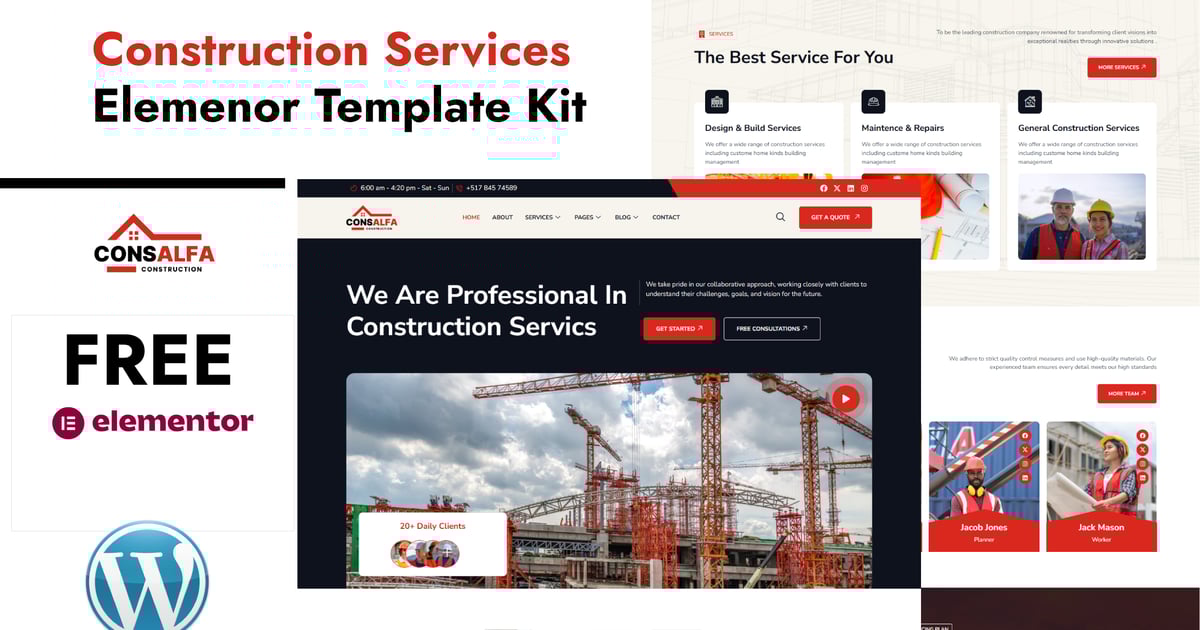 Cons Alfa – kit designed for construction Company, Building Services, Architecture, Engineering and other Construction services related website.