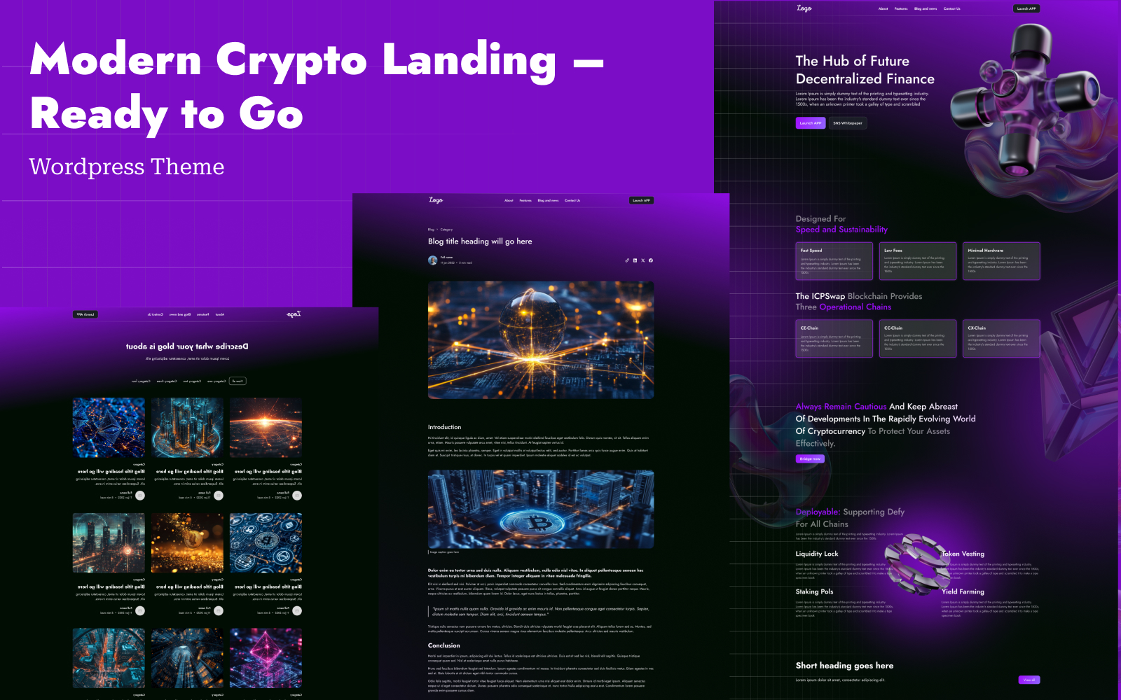 Crypto isnʼt just another WordPress theme for blockchain projects – itʼs your launchpad: sharp design, fast architecture, and built-in logic tailored for DeFi. Whether youʼre launching a DAO, building a DEX, or spinning up a sleek landing page for your whitepaper, Crypto gives you the tools to go live fast and look credible.