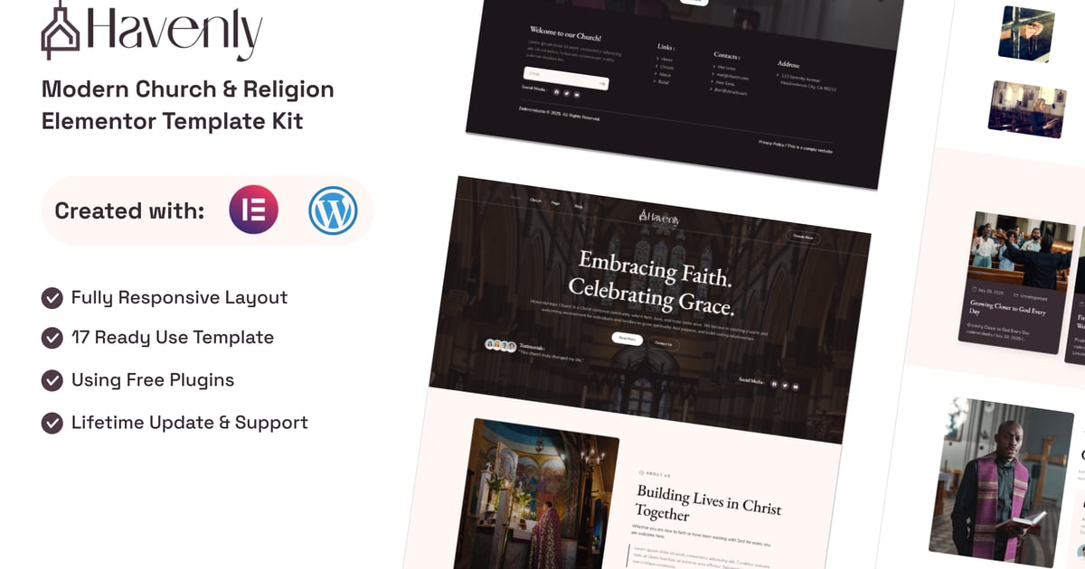 Havenly is an Elementor Template Kit for Charity and Volunteer Organization. It features a clean and minimalist design with a modern layout style, suitable for the Elementor Free version. This kit is easy to customize and can be used by anyone without coding knowledge.