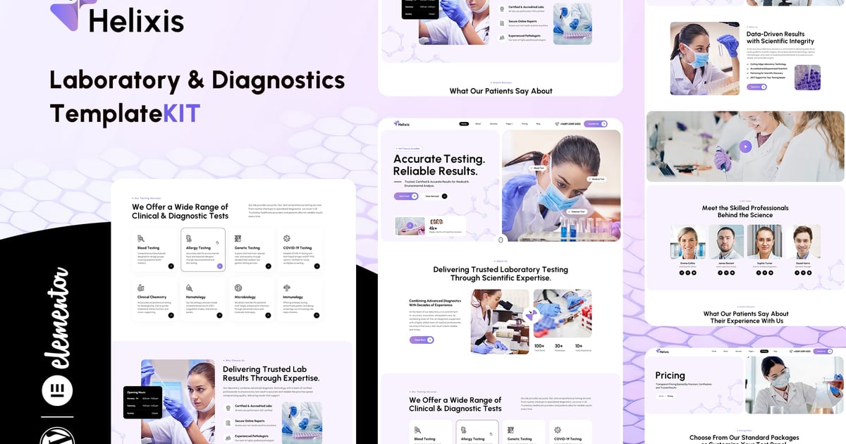 Helixis | Laboratory & Diagnostics Elementor Template Kit is a modern and professional template kit designed for medical laboratories, diagnostic centers, healthcare clinics, and research facilities. With its clean layout and scientific design approach, Helixis allows you to showcase your services, tests, and expertise in a trustworthy and visually engaging way, helping your healthcare brand establish credibility online.