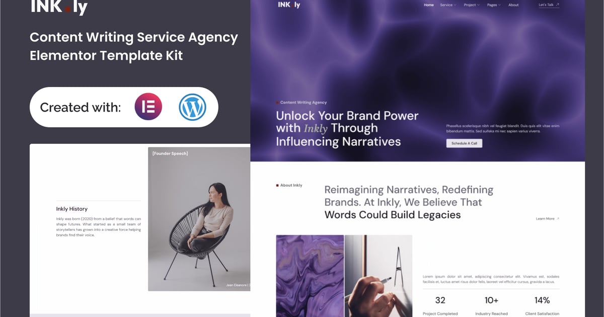 Inkly is a modern Elementor Template Kit built for content writing agencies, copywriters, bloggers, freelancers, and creative studios. With professional layouts and elegant typography, Inkly makes it easy to showcase your writing services, portfolio, pricing plans, and client testimonials — all without writing a single line of code.