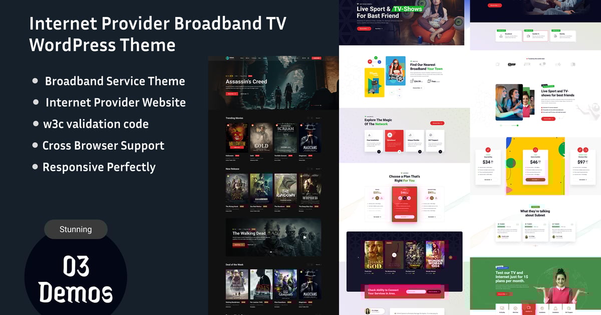 Subnet is a powerful & stylish Internet Provider, Wifi & Broadband TV WordPress Theme. Subnet is a perfect solution for your Internet company, Web Business or TV Product Websites. This WP theme will be preferably for telecom agency, corporate telephone lines, computer networks, analog video store, cable television shop and etc. Also, it is a good one for Mobile Operator, Online Movies networks as well as this theme is fully responsive and looks amazing on all mobile devices and small screens.