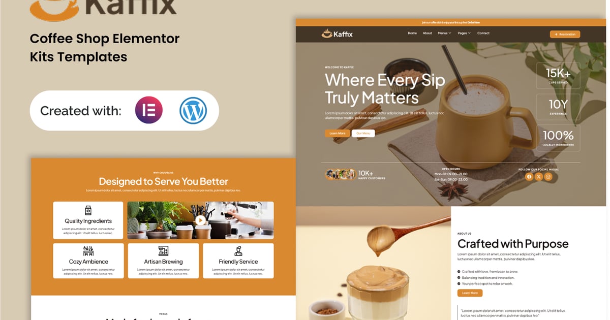 Kaffix is a professional, modern and clean Elementor Template Kit designed for Coffee Sop & Cafe Website. Built for WordPress, it seamlessly integrates with Elementor, enabling you to craft a professional website effortlessly—no coding skills required.