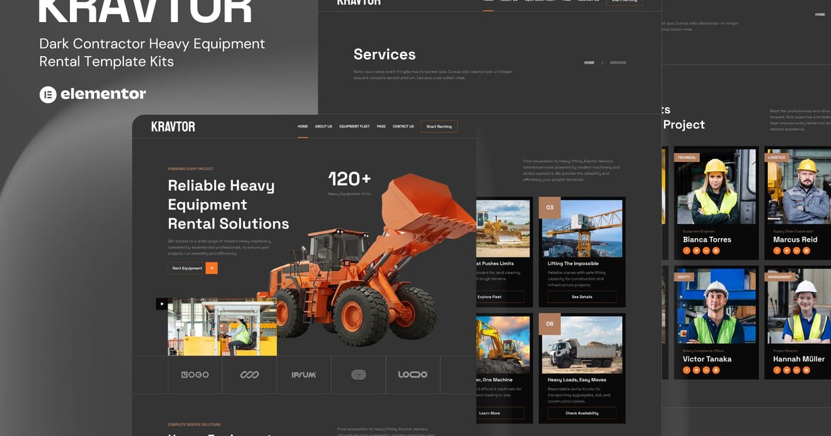 Kravtor – Contractor Heavy Equipment Rental Website Template Kit is designed for construction, contractors, and industrial businesses looking for a professional online presence. Built with Elementor, this template kit offers a modern dark design, easy customization, and responsive layouts that showcase heavy equipment rental services effectively. Perfect for promoting equipment fleets, pricing plans, and professional teams, Kravtor helps your business gain trust and attract clients with a strong digital identity. Whether you offer excavation, lifting, or construction machinery rentals, this template delivers everything you need to present services clearly and convert visitors into customers with a powerful website.