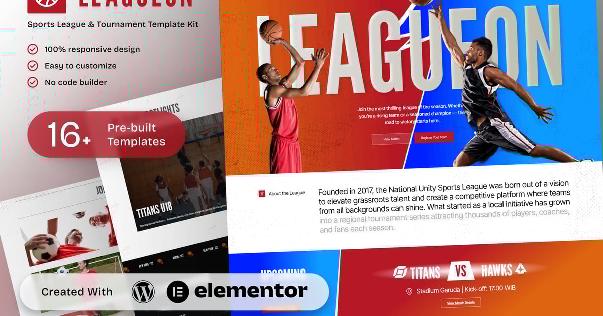 Leagueon – Sports League & Tournament Elementor Template Kit for Competitive Events