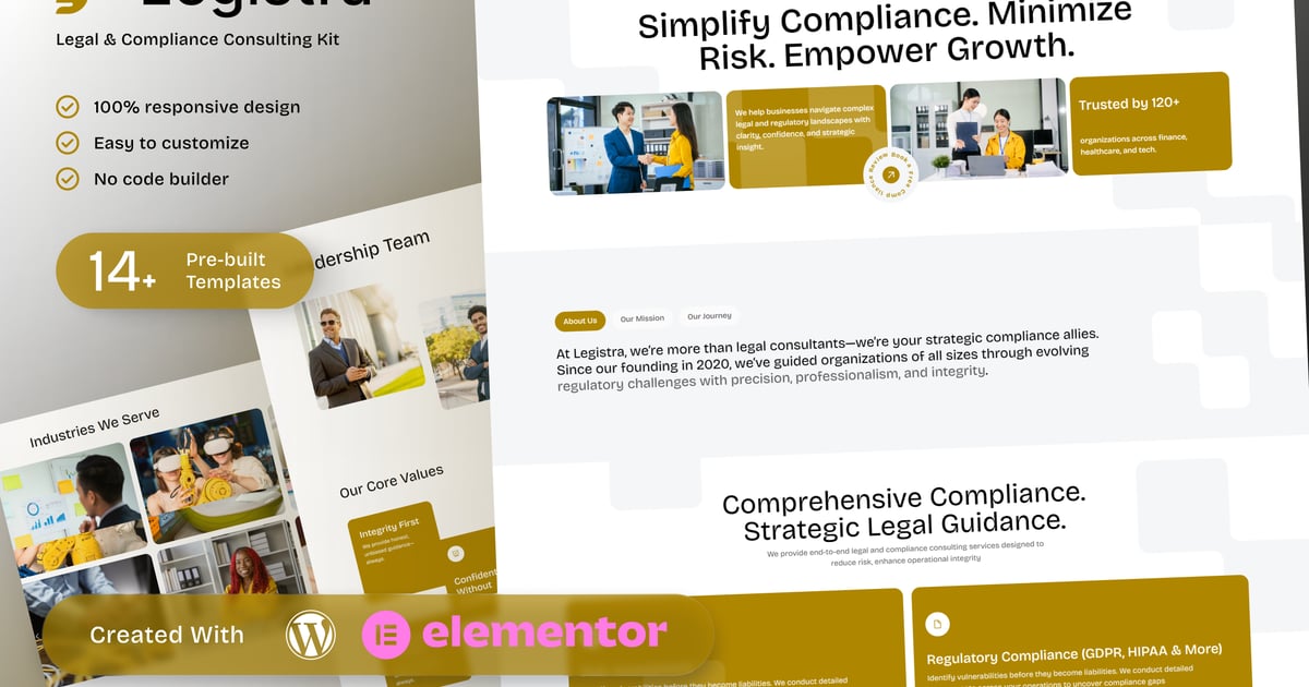 Legistra – Legal & Compliance Consulting Elementor Template Kit for Regulatory Clients