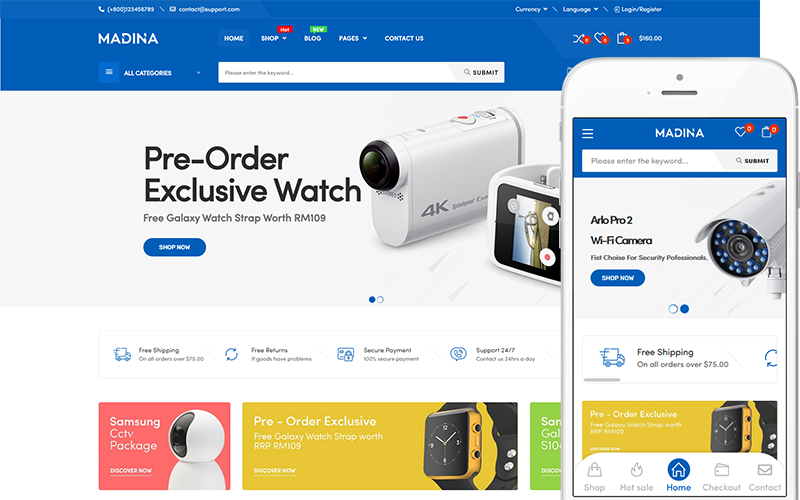 Madina is a good e-commerce website template created especially for Electronics Store, vendor based marketplaces, affiliate websites. Built with the latest version of WordPress, WooCommerce, Elementor, and WooVina theme combined with clear, unique & fully responsive layouts Madina is a good choice to create an awesome online electronics store, vendor based marketplaces websites!