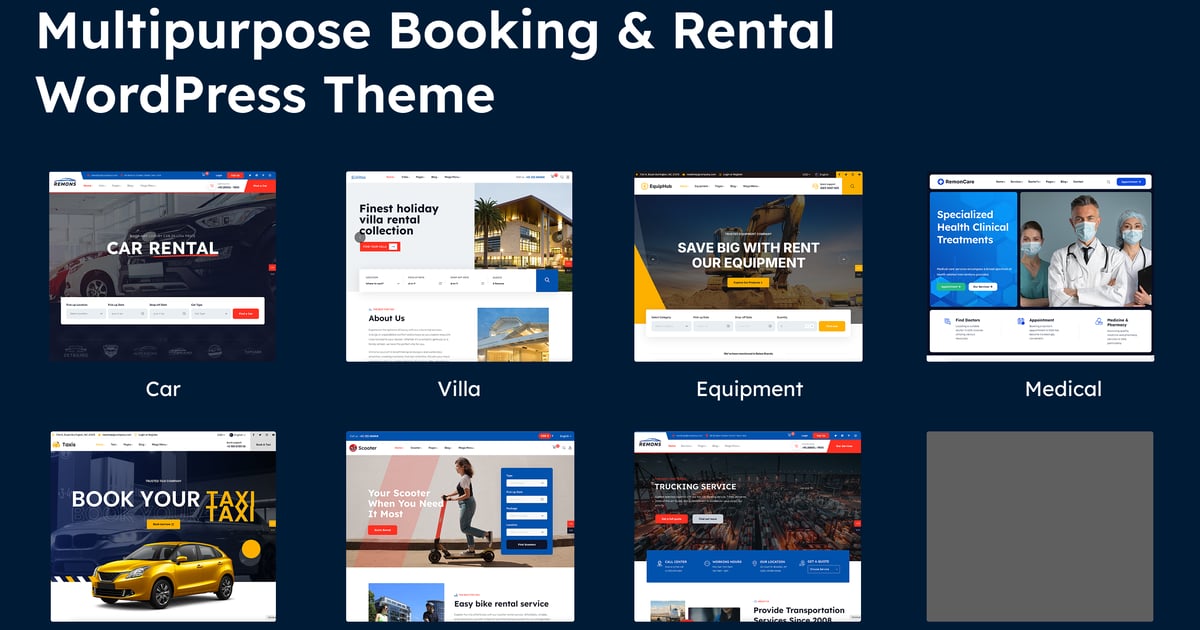 Booking & Rental Theme WordPress Theme designed fit multiple purpose: