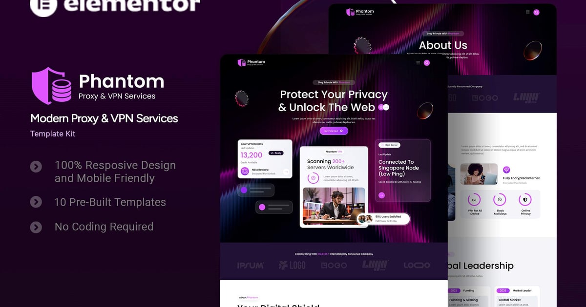 Phantom – Modern Proxy & VPN Services Elementor Template Kit