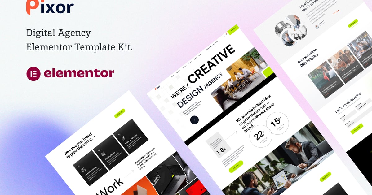 Pixor is Elementor Template Kit for Creative Digital Agency Website. Created With Elementor Page Builder, you can easily edit or customize it, no coding required, just drag and drop.