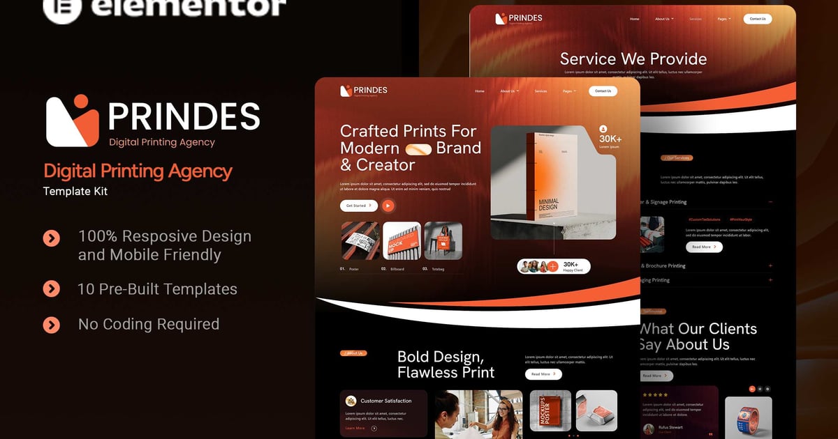 Prindes is an Elementor Template Kit for quickly and easily creating a full website in WordPress for your business featuring a modern and professional design. The kit features a fully compatible design system and professionally hand-picked images for a premium, branded head-start on your next project. Optimized for use with the free Hello Elementor theme, this kit is fine-tuned, fast-loading and fully responsive.