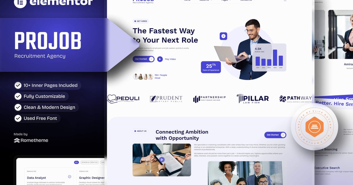Projob is a sleek, modern Elementor Template Kit specially designed for job portal, job vacancy, human relationship, HR consultant. With clean layouts, responsive design, and high-converting sections, Projob helps you launch a professional website quickly — without needing Elementor PRO or a heavy WordPress theme.