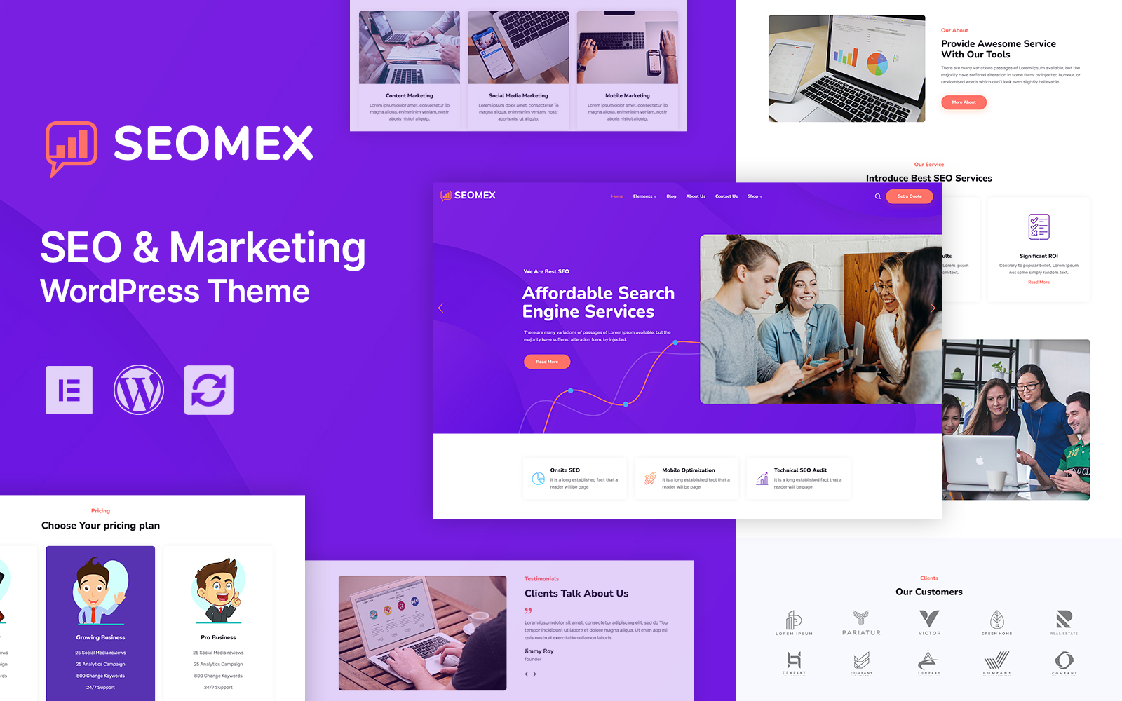 Explore SEOMEX – Neat and structured WordPress theme for all types of digital marketing or seo agency. This template is loaded with today’s must-have features to help you build a fabulous website. Sites using this theme benefit from its clean code and quick loading times. SEOMEX’s minimalistic yet effective layout makes it a great fit for digital marketing firms of all sizes. With SEOMEX, your business’s website visitors can get the most comprehensive and interesting data possible. Use SEOMEX to start creating more user-friendly websites immediately!