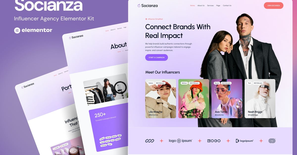 Socianza – Influencer Agency Website Template Kit is crafted for influencer marketing agencies, talent managers, and creative brands looking to connect with audiences through impactful campaigns. Featuring modern, bold, and engaging layouts, this Elementor kit helps showcase influencers, services, and portfolios with style. Perfect for managing collaborations, presenting pricing packages, and highlighting case studies, Socianza ensures a professional online presence that builds trust and boosts conversions. Fully responsive and easy to customize, it’s ideal for agencies aiming to grow their digital influence. Build your influencer agency website quickly and effectively with Socianza.