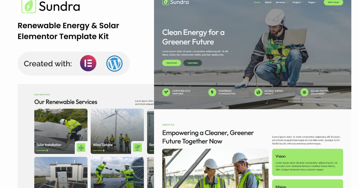 Sundra is a clean and modern Elementor Template Kit crafted for solar installers, renewable energy companies, EV charging providers, and green-tech consultants. With bright visuals and conversion-focused layouts, Sundra helps you promote solar PV, battery storage, and EV charging services, showcase case studies, and drive quote requests — all without writing a single line of code.