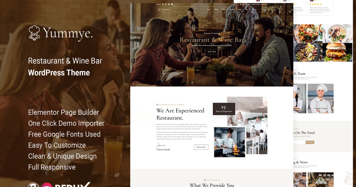 Yummye – Restaurant & Wine Bar WordPress Theme.that has been specifically designed to meet the needs of small restaurants, cafes, bars, and other food-related businesses. Our team of expert developers and designers have utilized the latest web development technology and design trends to create a stunning and functional theme that will help you showcase your restaurant in the best possible light..