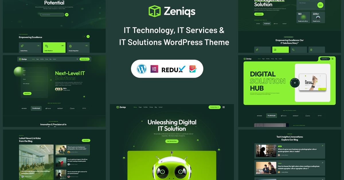 Zeniqs – IT Services, IT Technology and IT Solutions WordPress Theme use 19+ Pages with Premium Design! We can be used by agencies, apps, businesses, digital, IT services, IT solutions, network solutions, saas, services, software, startup, technology, a technology company, and technology service website with a super friendly and 100% responsive layouts. The WP theme comes with a creative only 5 plus homepages design layout, responsive and 17+ valid inner pages. The design is very elegant and modern, and also very easy to customize with 1320px update bootstrap grid. We hope, you’ll obviously feel happy with using this WordPress Theme.